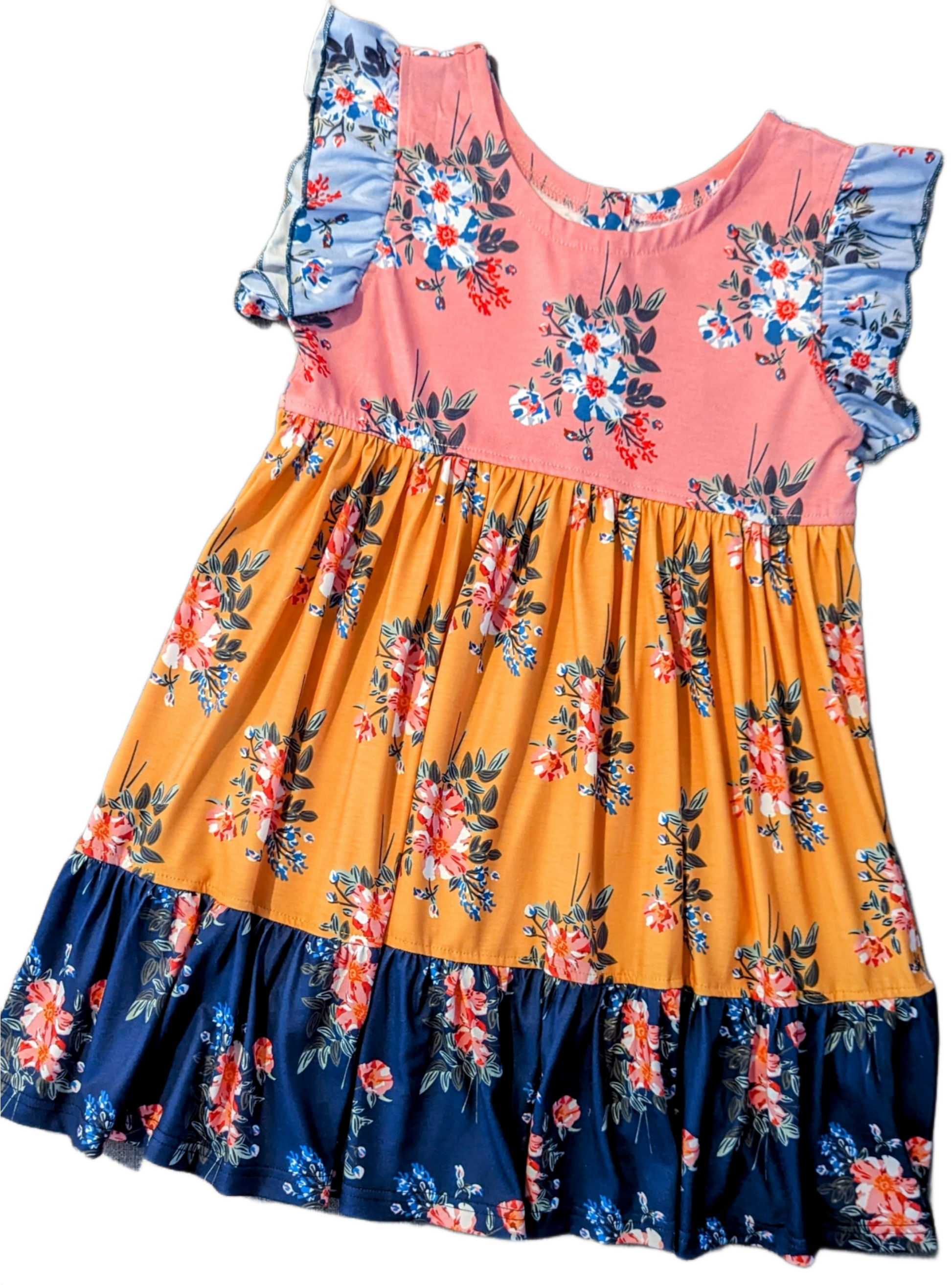 Girls Multicolor Print Ruffle Pleated Dress